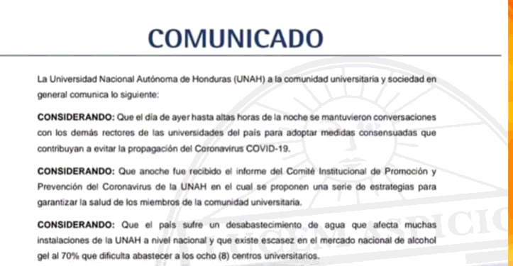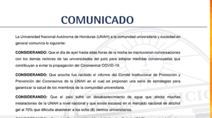 UNAH suspende actividades académicas a nivel nacional