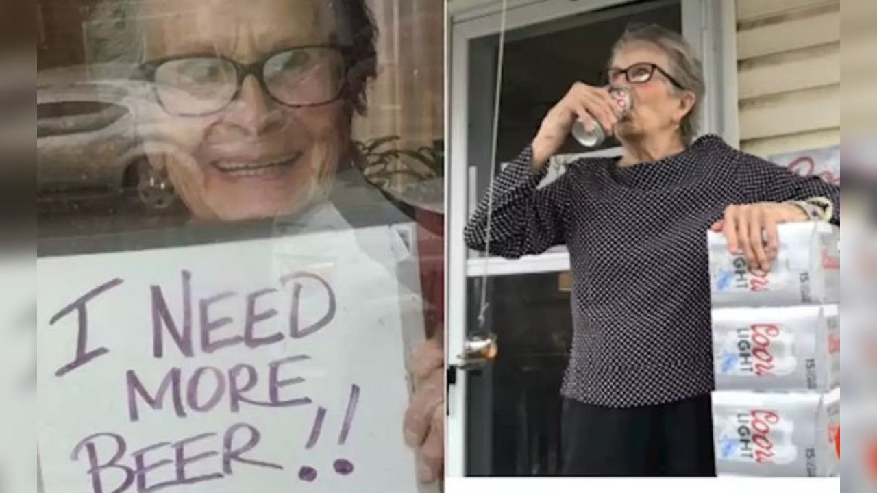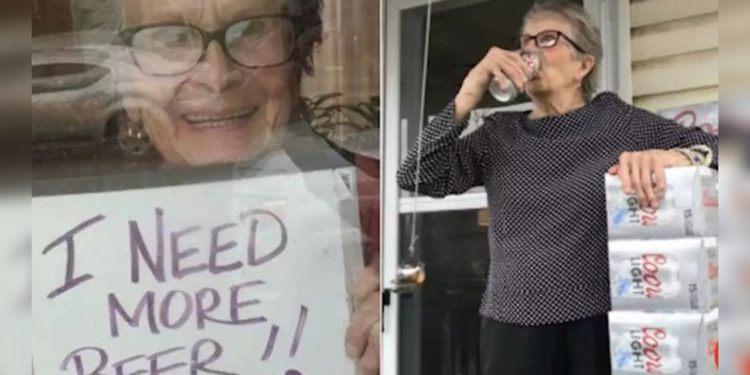 Después de que Olive Veronesi, se hiciera viral por su fotografía sosteniendo un letrero pidiendo cerveza, recibió un regalo que muchos ya envidian, pues la marca favorita de la ancianita le ha enviado una dotación completa de cervezas para que pueda pasar esta contingencia.