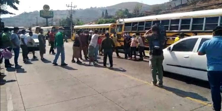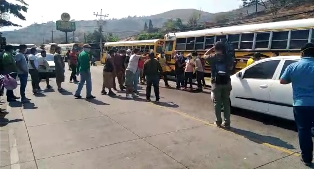 Conductores del transporte Urbano protestan por alimentos en la salida al sur de la capital