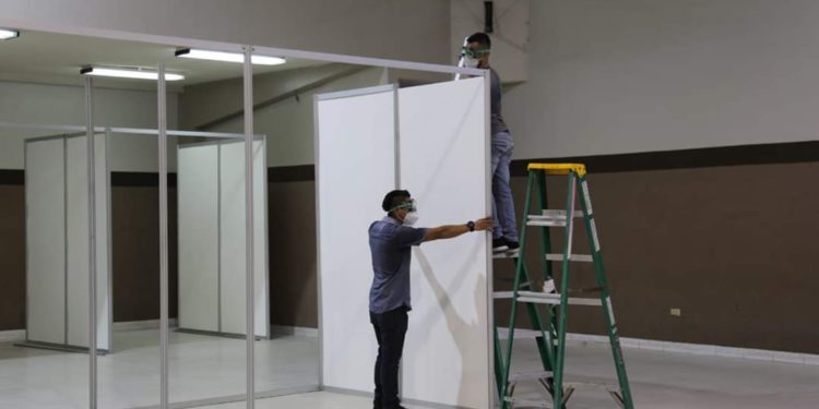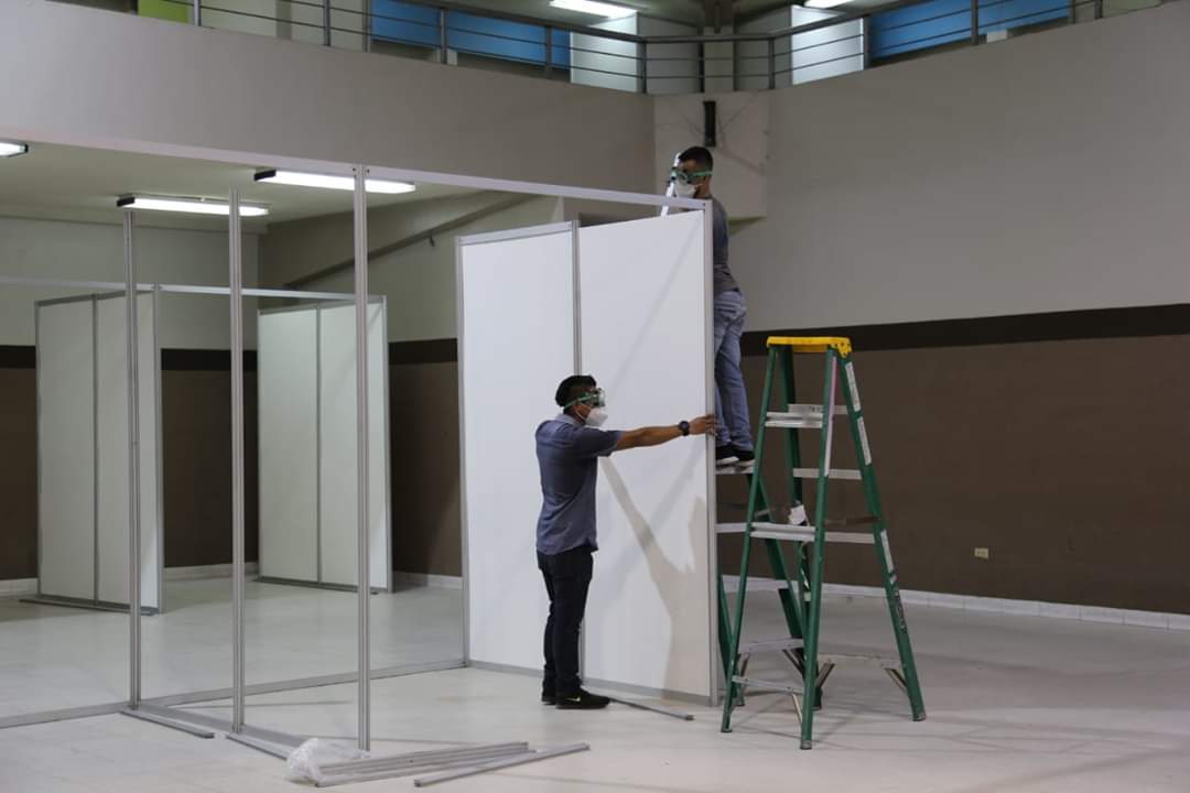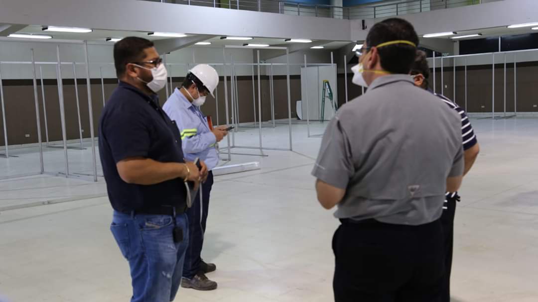 El canciller Lisandro Rosales inspeccionó este día, los avances de readecuación como centro de atención de pacientes con COVID – 19 que se realizan en Expocentro donde se colocarán 402 camas.