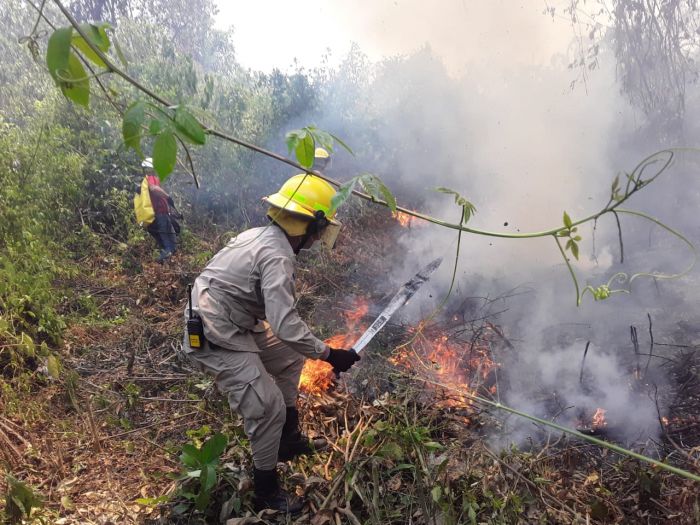 El capitán Medina del Cuerpo de Bomberos ceibeño, indicó que el siniestro inició el lunes por la tarde y aunque se consideraba que se había confinado volvió a avivarse y está fuera de control por lo que desde lejos pueden observarse las grandes lenguas de fuego consumiendo el recurso forestal.