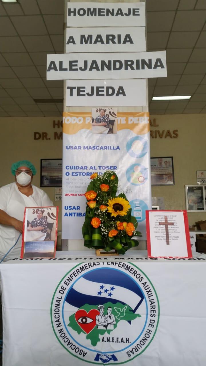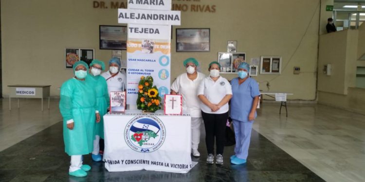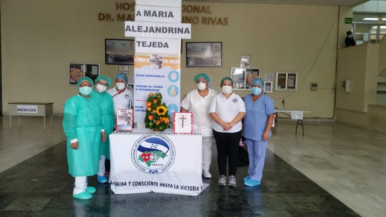 El personal de enfermería del hospital Mario Rivas de San Pedro Sula, rindió homenaje a su compañera Maria Alejandra Tejeda, quien perdió la batalla contra el covid19 en el IHSS, donde estuvo al menos 20 días con un respirador artificial.
