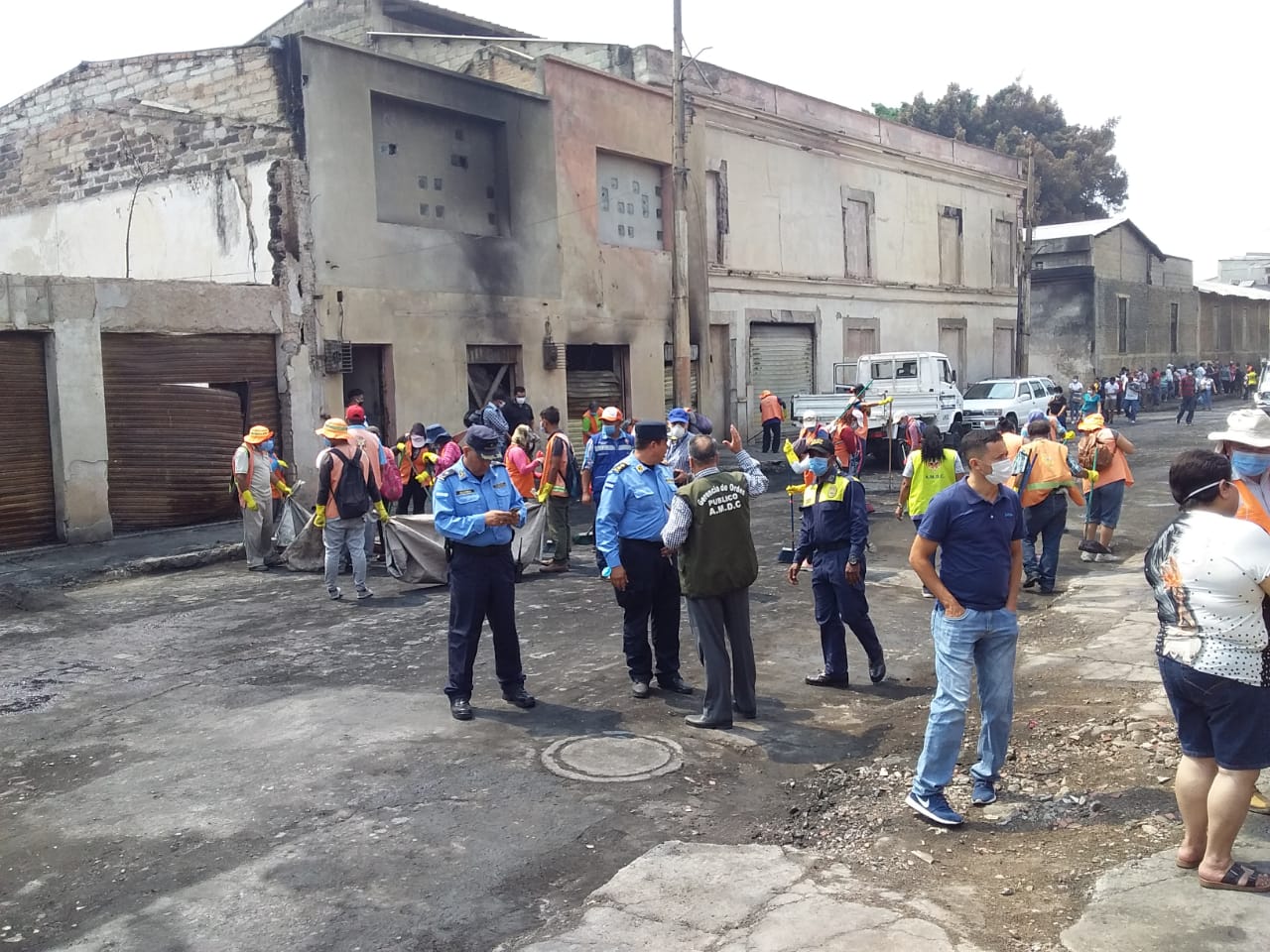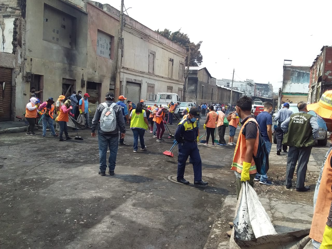 Este lunes las microempresas de barrido de la Alcaldía del Distrito Central, bajo la coordinación de la Gerencia de Orden Público y con apoyo del Comité de Emergencia Municipal , continúan las labores de limpieza y lavado de calles y avenidas en los mercados de que se incendiaron la madrugada del pasado viernes en Comayagüela, trabajos que no se detienen a pesar de estar atendiendo la emergencia sanitaria para frenar el aumento de casos de COVID-19 en la capital.
