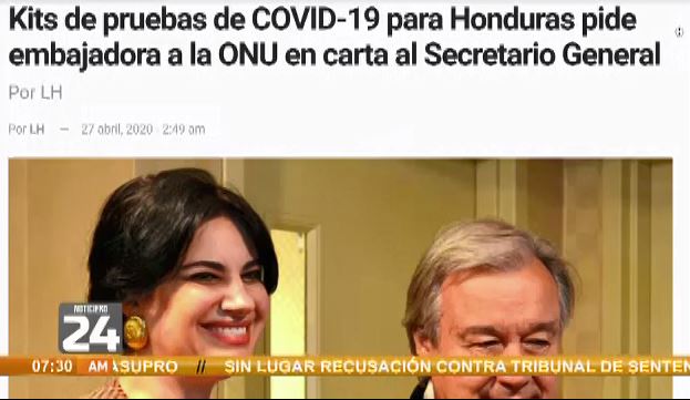 La embajadora de Honduras en Naciones Unidas Mary Elizabeth Flores Flake, envió al Secretario General una solicitud para que interceda y poder adquirir una donación al país de kits para masificar las pruebas de coronavirus a nivel nacional.