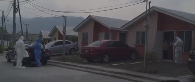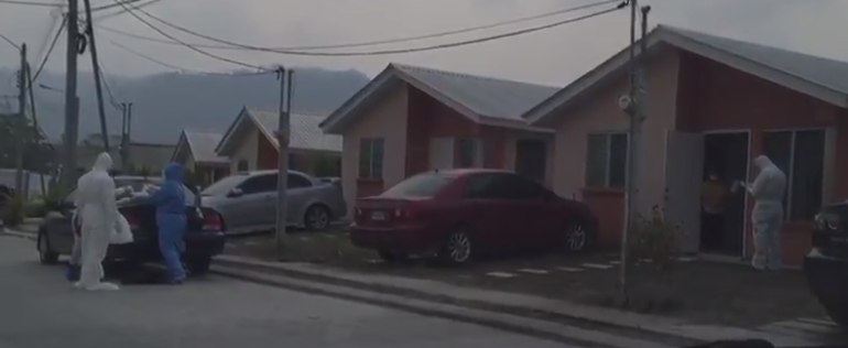 Una persona grabó un vídeo en el que se puede observar como el personal de la secretaría de salud está por retirar el cuerpo de un paciente con covid19 en la col. Villa San Juan del municipio de Choloma.