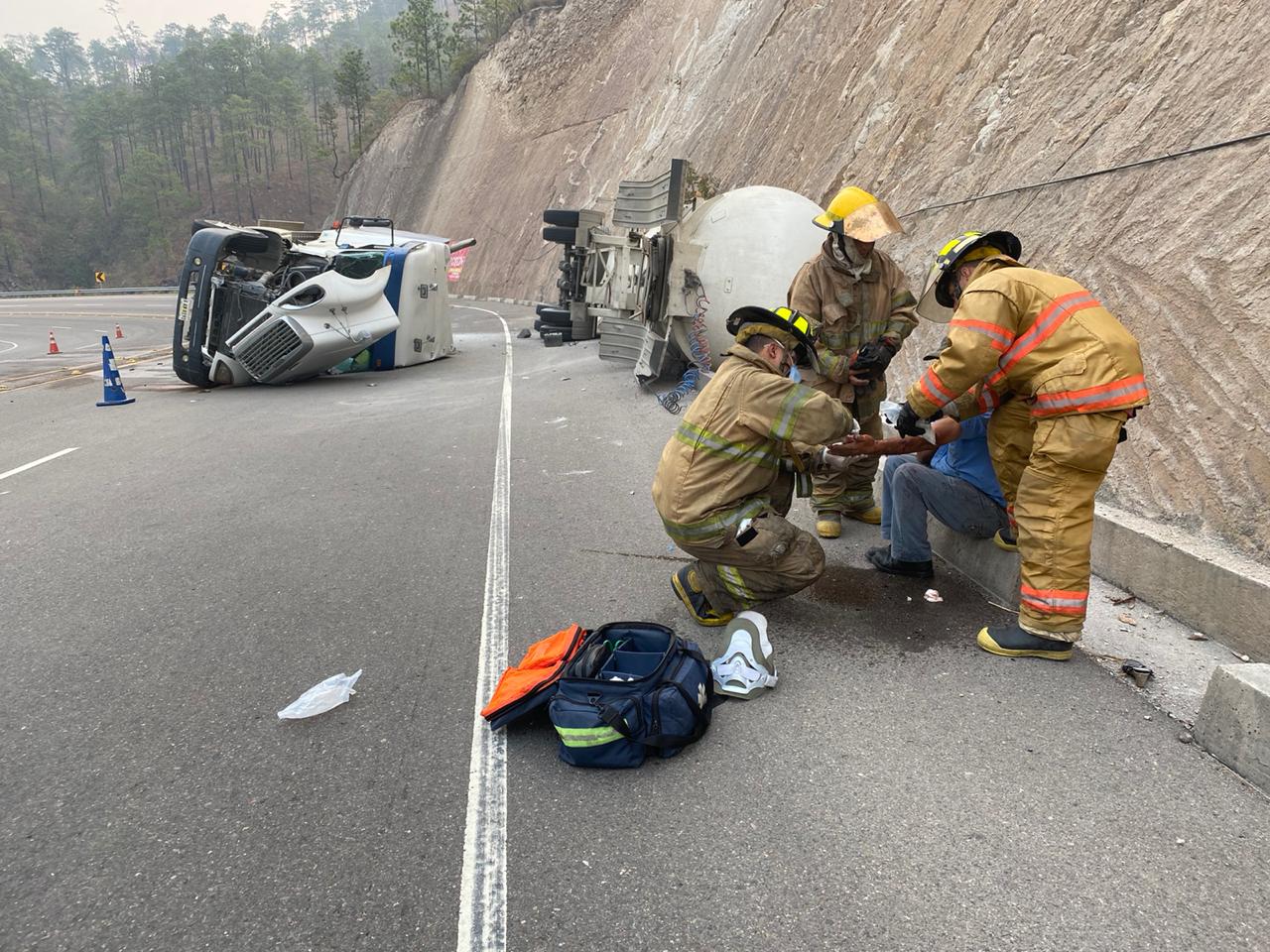 Un accidente de tránsito de un tanque cisterna que transporta gas LP en el kilómetro 98 de la CA-5, cuesta de la virgen, el conductor quien responde al nombre de Pedro López de 70 años de edad, solo presenta heridas leves en diferentes partes de su cuerpo.
