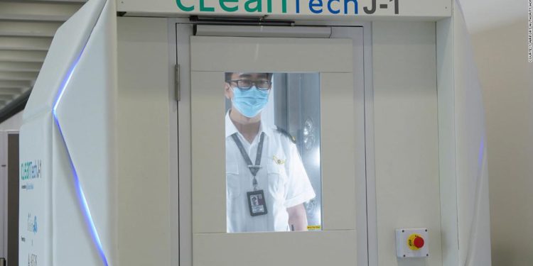 Cleantech es el nombre de esta nueva cabina de desinfección de cuerpo completo, que someterá a los pasajeros a un control de temperatura y llevará a cabo un proceso de desinfección y desinfección, en el que se rocía a la persona con aerosol desinfectante y un recubrimiento antimicrobiano expuesto que puede matar de forma remota los gérmenes, virus y bacterias que se encuentran en la ropa o el cuerpo.
