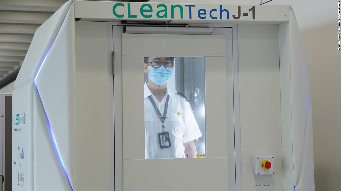 Ahora, el Aeropuerto Internacional de Hong Kong está liderando el camino al introducir cabinas de desinfección de cuerpo completo y robots de limpieza.