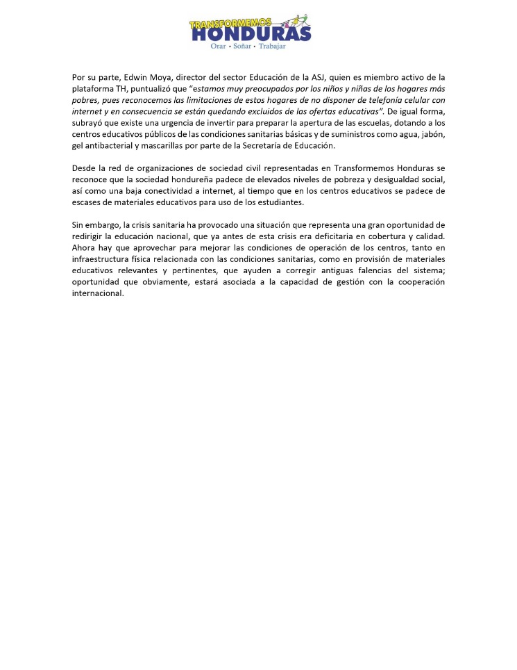 Con el fin de no perder el año escolar la sociedad civil propone a las autoridades de la Secretaría de Educación adoptar las medidas necesarias para que los estudiantes tengan el mejor aprendizaje de manera virtual.
