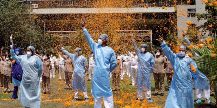 En el marco de la pandemia de coronavirus los profesionales de la salud se convirtieron en los nuevos héroes, al estar en la primera línea de la lucha contra el virus y trabajar de manera incansable. Es así que, diferentes homenajes y reconocimientos se replican día a día en distintas partes del mundo. Una llamativa muestra tuvo lugar este domingo en India, donde helicópteros de la fuerza aérea (IAF) dejaron caer pétalos de flores sobre los hospitales de varias ciudades para dar las gracias a médicos, enfermeras y policías.
