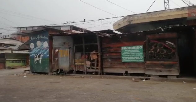 Después de que las autoridades decretaran toque de queda absoluto en el departamento de Cortés, el mercado Dandy en San Pedro Sua permanece desolado y con los puestos cerrados para evitar la propagación del covid-19 en uno de las zonas más afectadas por esta pandemia.
