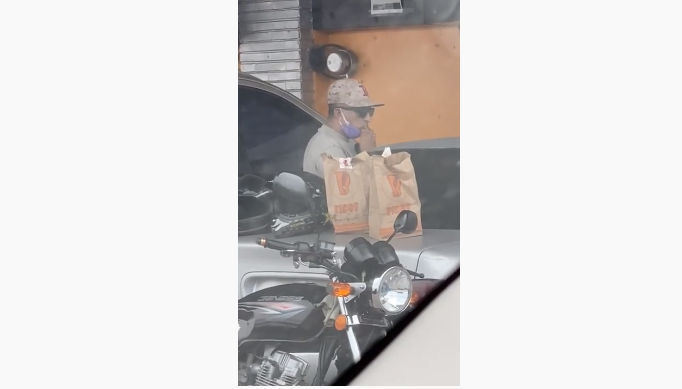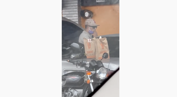 Un hombre fue captado comiendo papas fritas mientras orinaba cerca de un vehículo, esta acción se hizo viral en redes sociales misma que desató diversas opiniones si se trataba o no de un repartidor de un restaurante de comida rápida.