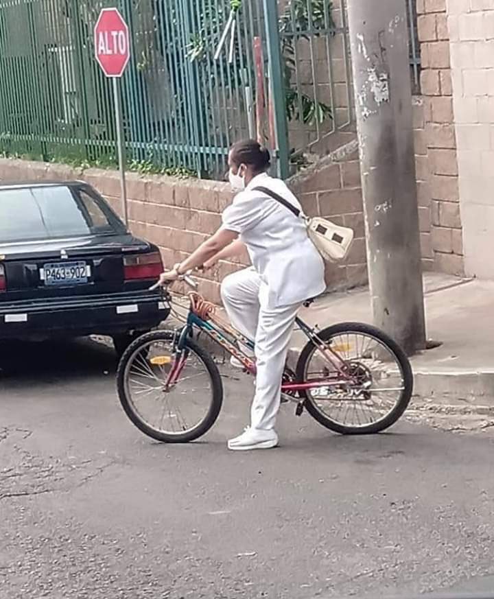 Una enfermera se volvió viral en redes sociales al ser captada partiendo en bicicleta hacia su centro de labores, en donde diariamente trata a pacientes con coronavirus