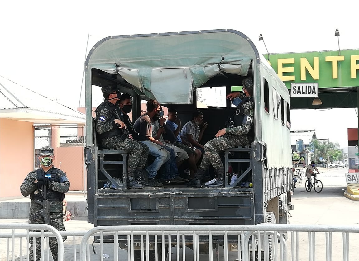 Por incumplir el toque de queda absoluto e irrespeto a las autoridades detienen a las 10 personas en la central de abastos en San Pedro Sula.