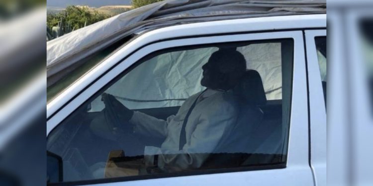 Las fotos tomadas en el extraño funeral muestran a Tshekede Bufton Pitso en el asiento del conductor de su amado Mercedes, con el cinturón de seguridad puesto y las manos en el volante, mientras varias personas luchan por bajar lentamente el vehículo a la tumba de ocho pies de profundidad excavada en la parcela de la familia Pitso.