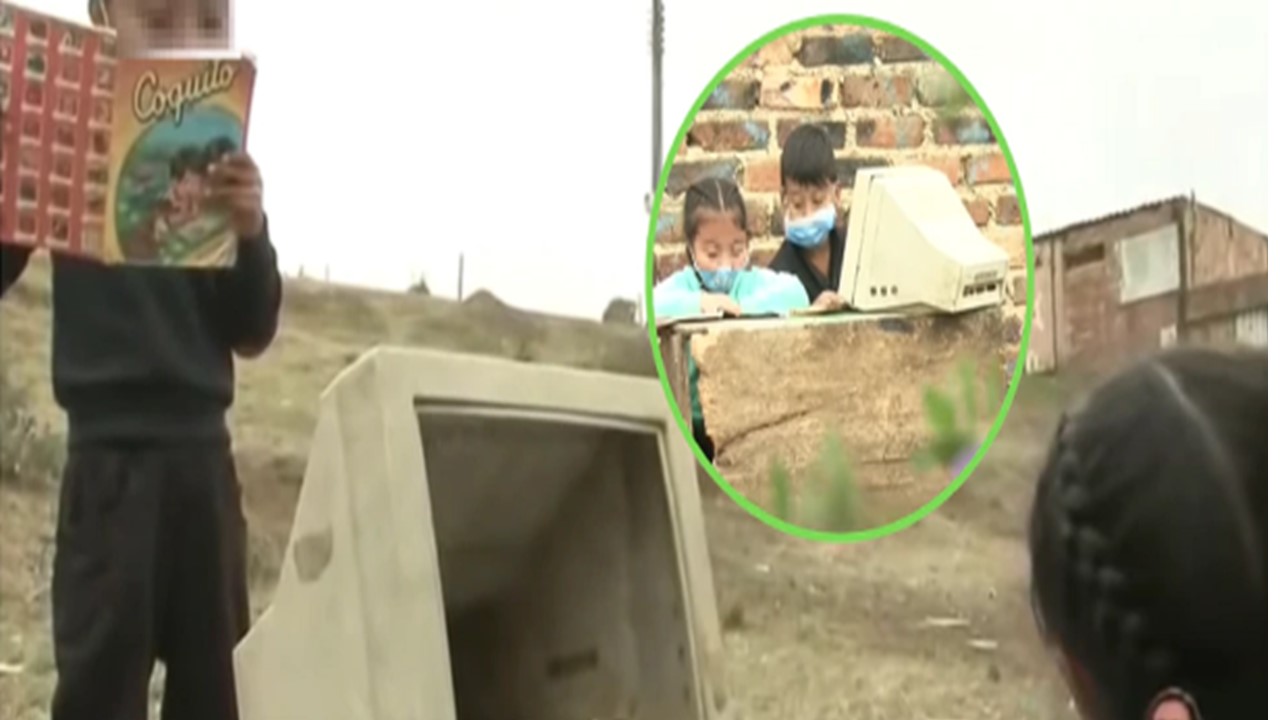 A diferencia de sus amigos, estos dos primitos hacen sus tareas por medio de WhatsApp en los celulares de sus papás, pero sueñan con un computador como el encontrado.