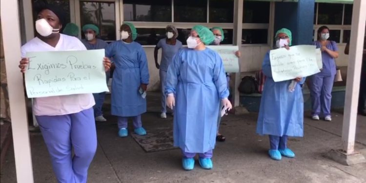 Son más de una docena de enfermeras profesionales, jefas, quienes desde esta mañana se niegan a entrar a unas cuatro salas donde también laboran otra cantidad de enfermeras auxiliares afectadas por el Covid.