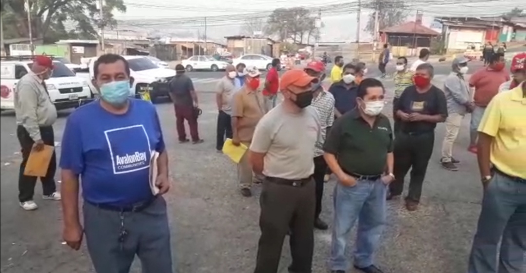 Taxistas en la capital realizan un plantón en la colonia Torocagua exigiendo un bono de 7 mil lempiras para mitigar la crisis que deja la pandemia.
