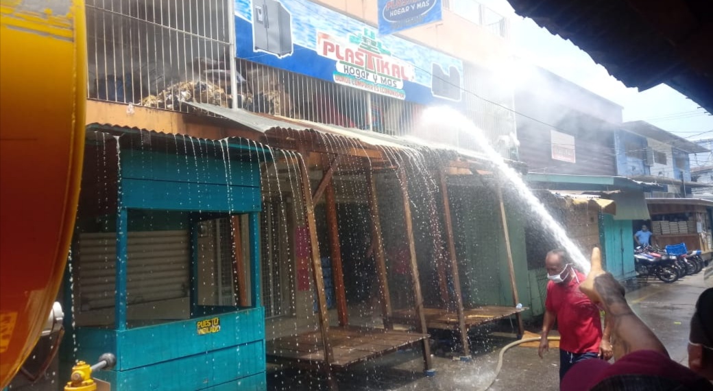 En La Ceiba se reporta un incendio en la zona del mercado San Isidro, elementos del Cuerpo de Bomberos están en el sector controlando las llamas en un negocio de venta de plásticos.