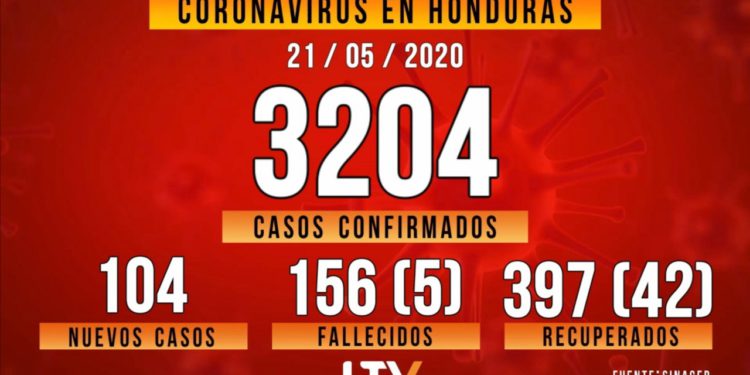 El sistema Nacional de Gestión de Riesgos confirmó este jueves 104 nuevos casos de covid-19 para hacer un total de 3,204 casos a nivel nacional, siendo el departamento de Cortés el más afectado.