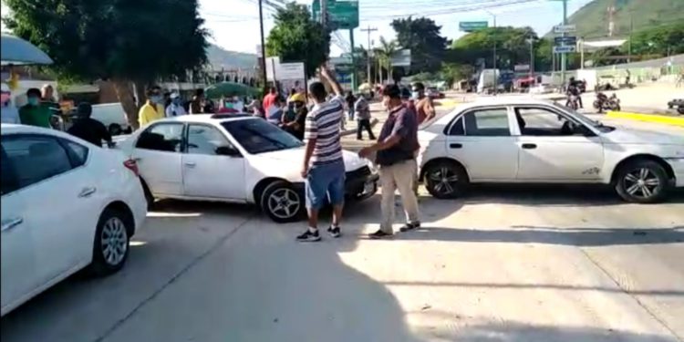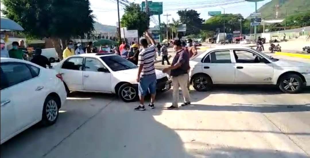 Conductores de taxis se toman la salida al sur de la capital, exigiendo que se les suspenda el pago de la matrícula y un bono solidario.