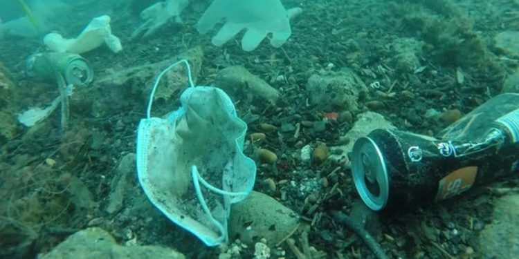 En las imágenes se pueden observar tapabocas y guantes que se utilizan durante la emergencia sanitaria en el fondo de las aguas del Mediterráneo. Asimismo, pueden hallarse más basura como latas, bolsas de plástico y juguetes perdidos.
