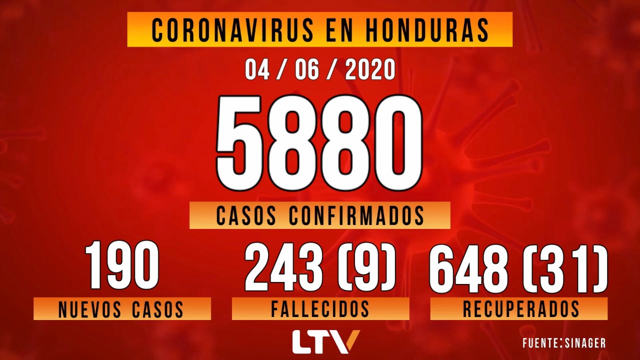 El Sistema Nacional de Gestion de Riesgos confirmó este jueves 190 nuevos casos de covid-19 siendo Cortés y Francisco Morazán los departamentos más afectados, asimismo se dio a conocer que Honduras ya suma 5,880 casos de coronavirus.