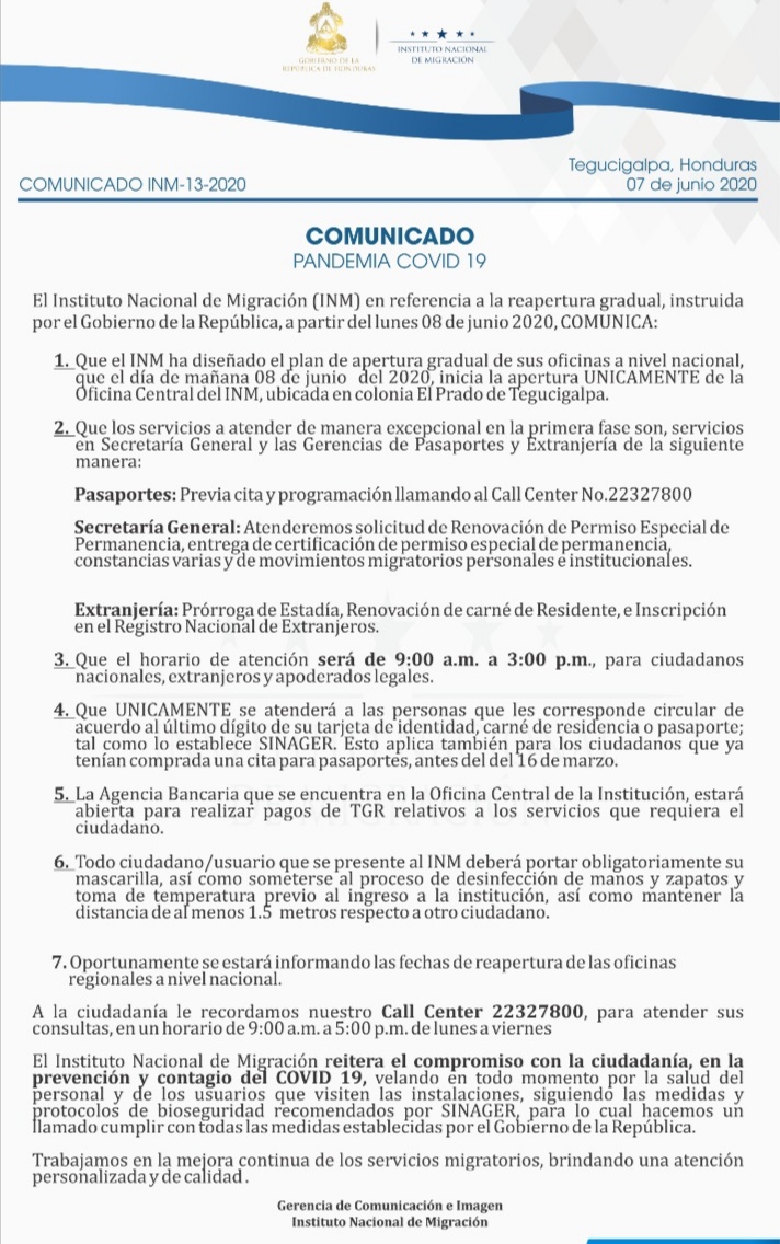 Instituto de Migración sólo atenderá en Tegucigalpa